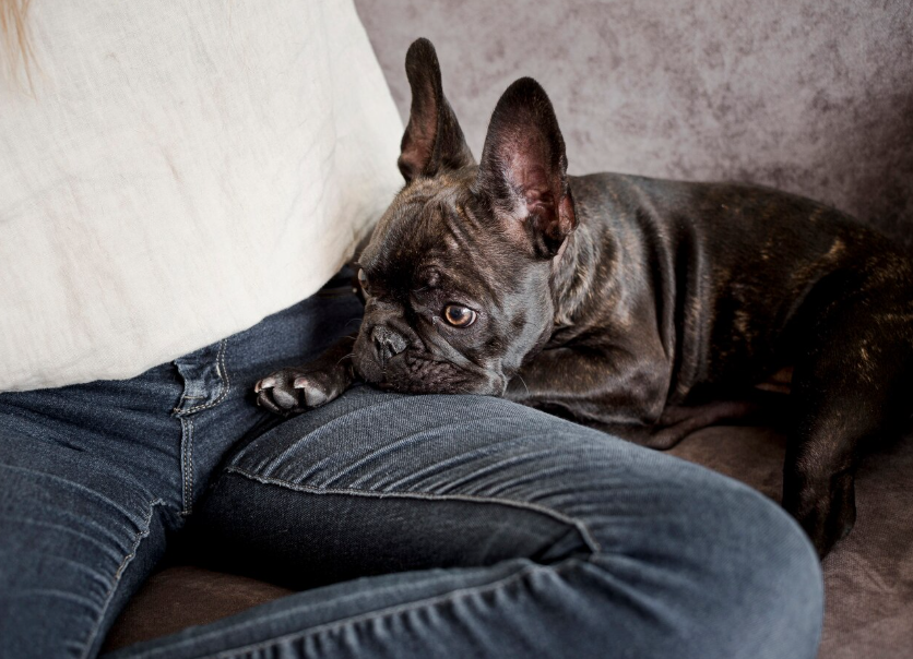 Dogs may retreat to a safe space, under furniture, or stay close to their owner when they are feeling anxious.