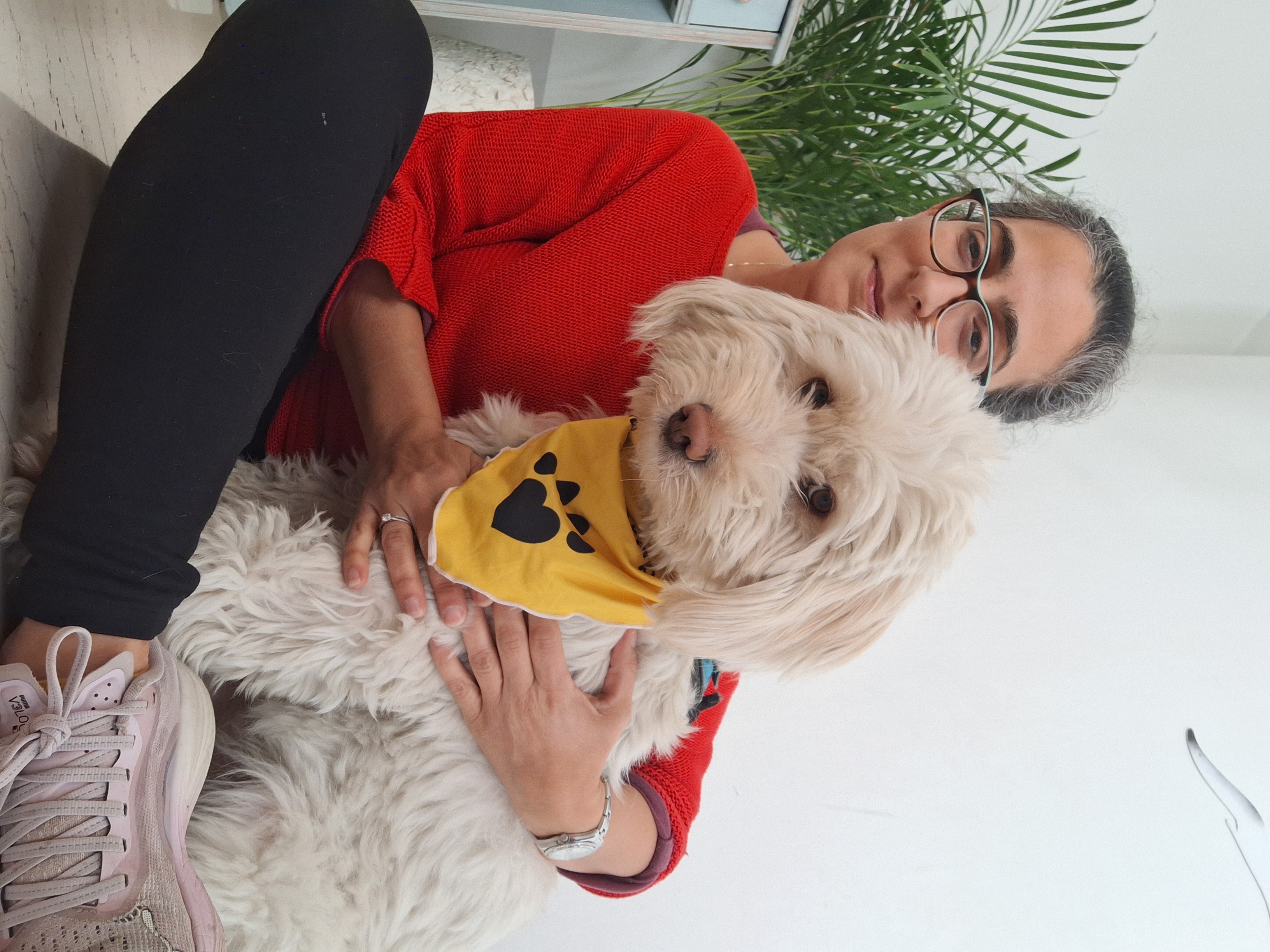 In 2018 I began the process: I adopted Amber and started the training at a Service Dog Training School under the excellent guidance of my instructors, Michelle and Jim. It was a fun and challenging 10-week training. First, I completed training the basics of obedience: sit-stay-come, walk nicely on a leash, stay calm, despite the loud noises around. Amber picked them up quickly. After the official “In Training” coat arrived, I took her everywhere with my boys.