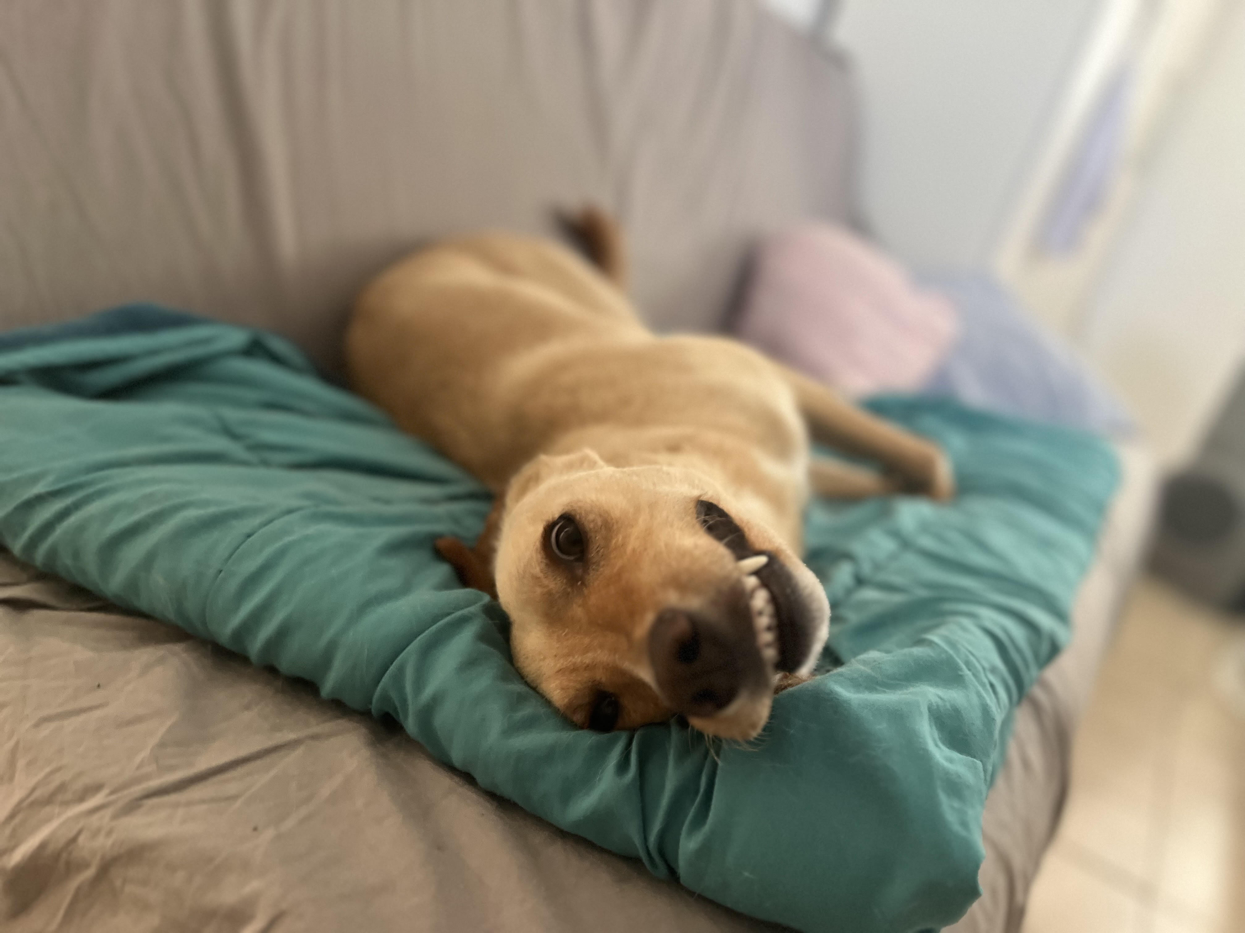Then it moved forward for to a more advanced training — train her to recognize that I’m about to have a panic attack. When I approach a crowd, my breathing becomes agitated. I used that as a signal for her to tell me that I was about to panic. To train her to recognize this, I used the “click and reward” clicker training that I learned in my first class at the Service Dog Training school. I would breathe faster during these training sessions so that she would become familiar with it. After lots of repetitions - ie faster breath then click-treat - Amber learned to cuddle my right leg when my breathing changed.