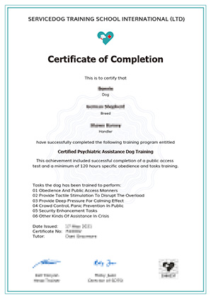 The primary purpose of certification is to ensure that your dog is fully trained and able to perform psychiatric assistance dog work and that you, the handler, understand how to lead your Assistance Dog/Service Dog through everyday situations, such as going to a store, a park, a hospital, a care home or any other public place.